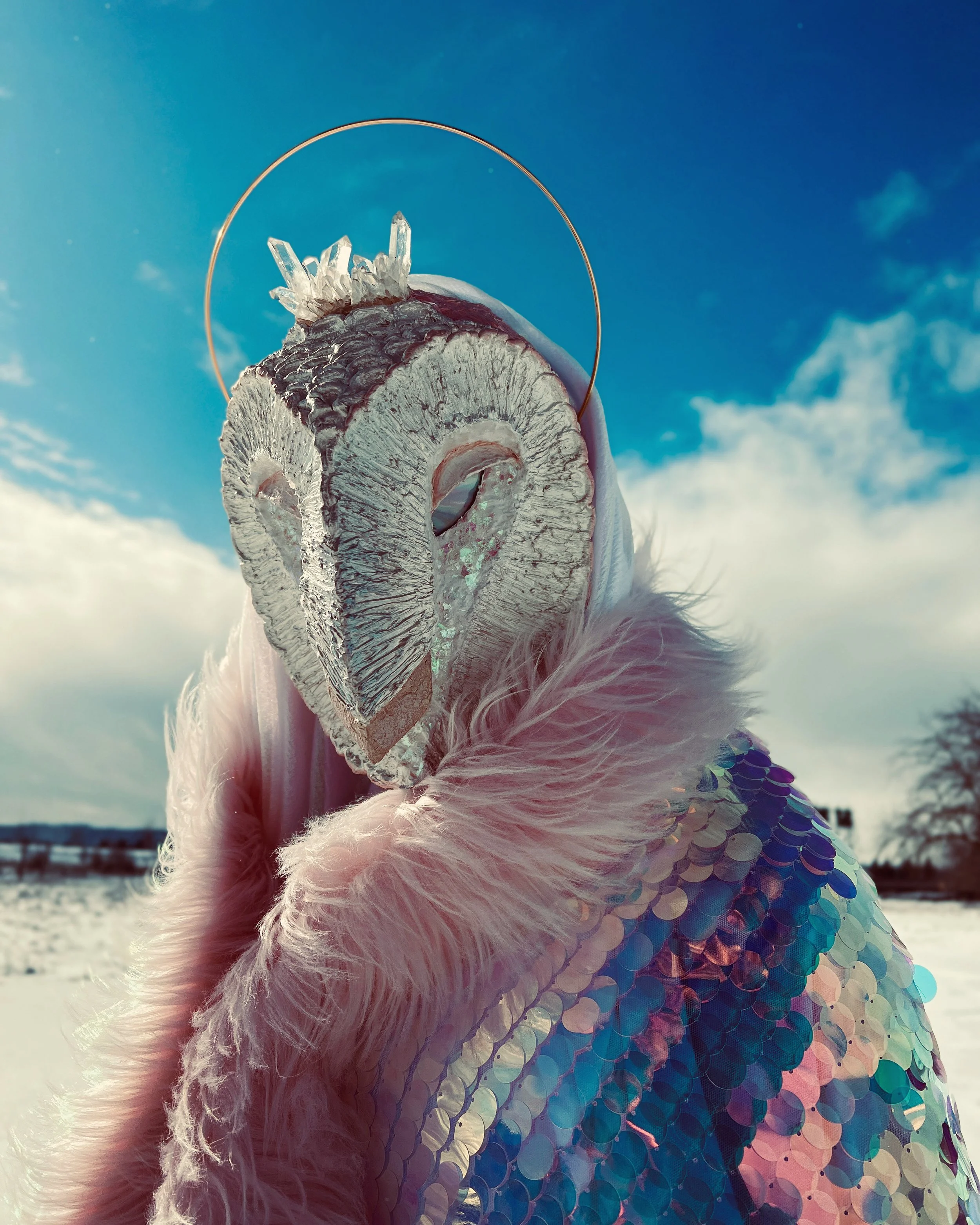 There is something in these creatures that lives inside me, something I have not been able to express until now. It is not entirely clear to me what it is yet, just that the fire inside me still roars with each costume I create and I follow that fire like a beacon. I have always had a love and fascination with owls and for many years have incorporated them into my art. I believe these costumes are just the next evolution in my self exploration and expression.